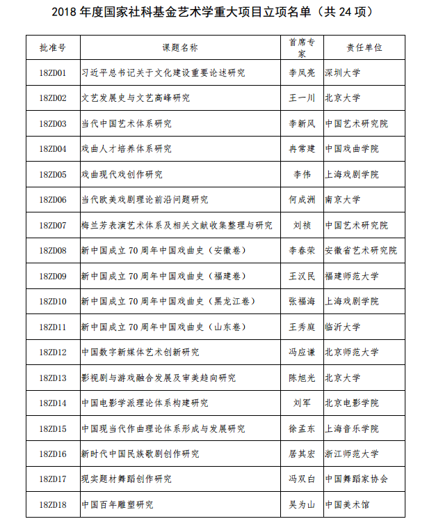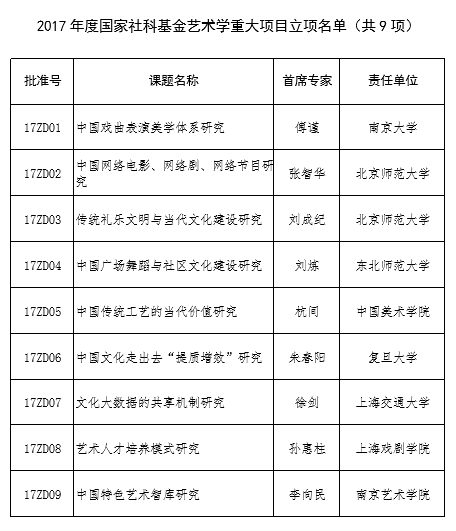 为做好2019年度国家社科基金艺术学重大项目招投标工作,广泛听取相关领域专家学者的意见和建议,文化和旅游部科技教育司暨全国艺术科学规划领导小组办公室公开征集2019年度国家社科基金艺术学重大项目建议选题,现就有关事项通知如下: