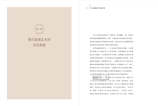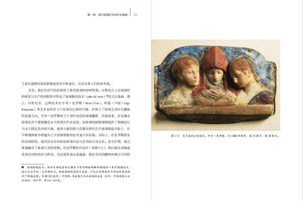 著作共三个章节,主要围绕玻璃艺术学术概念的维度界定、玻璃艺术演变的关键节点、现代玻璃艺术发展的“三性特征”(断代性、不均衡性、滞后性)以及玻璃创作与教学“三性原则”(民族性、时代性、创新性)展开论证,清晰的解构了玻璃艺术学科发展、美学评论以及文化产业的相互关联。