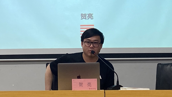 贺亮向在场师生分享青年艺术创作项目的申报书填写、艺术创作积累和选题规划经验。